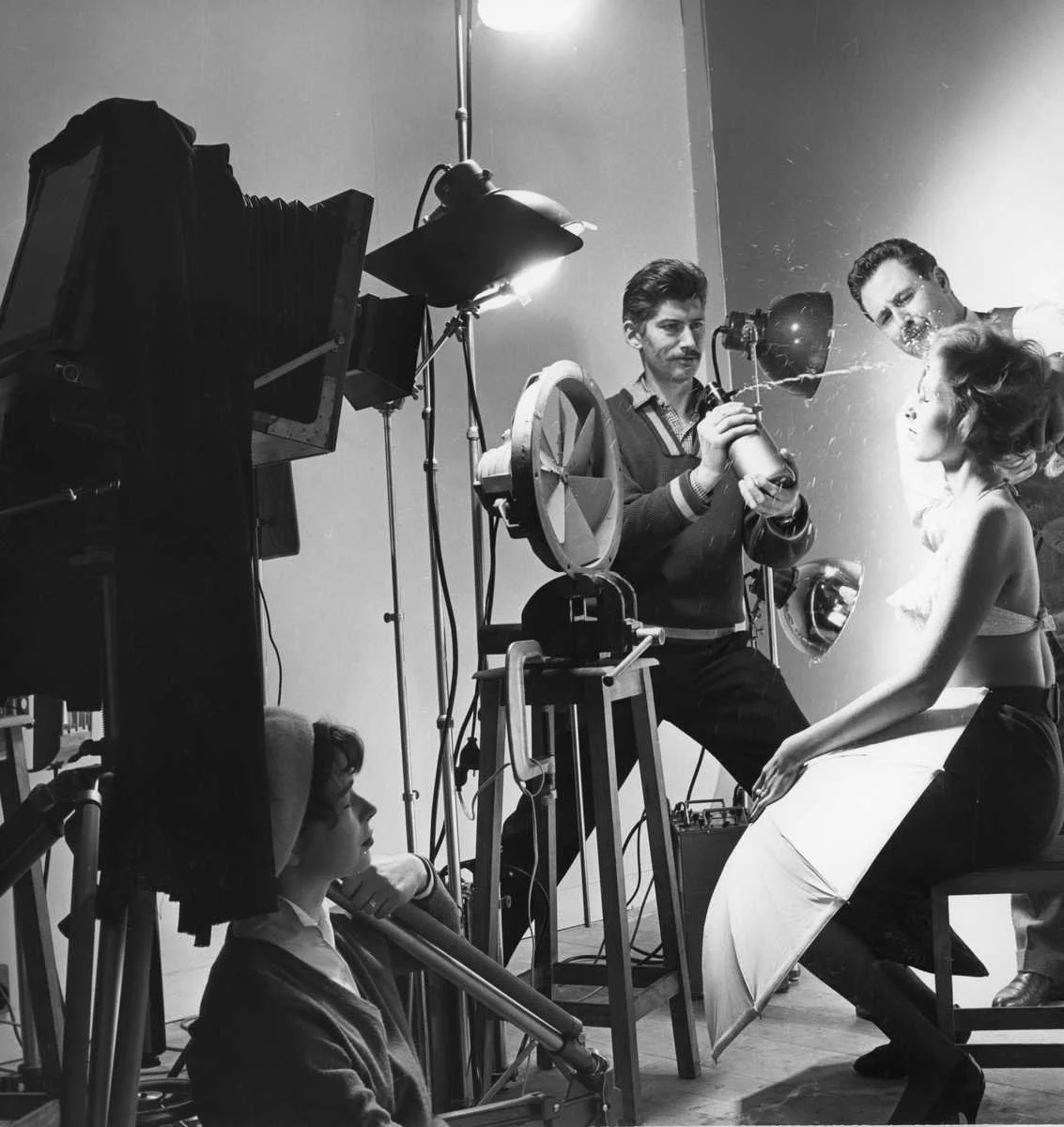 Jean Henry dans son atelier. Son métier : la retouche sur papier argentique, au crayon, pinceau, aérographe. Il était ami et retoucheur des plus grands photographes de son époque. Il figure à titre amical pour la campagne VolksWagen (1961) sur le toit de la coccinelle qui flotte sur la mer.